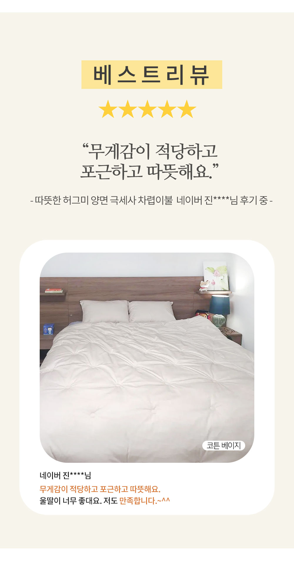 따뜻한 허그미 양면 극세사 차렵이불 (코튼 베이지) 킹사이즈 주문가능